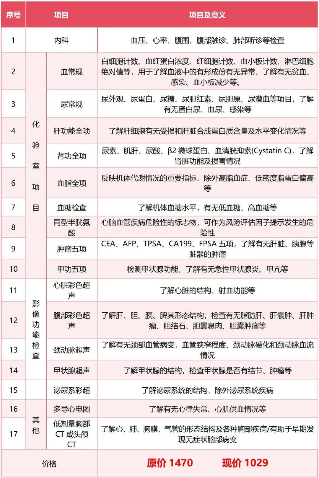 本套餐涵盖核心体检项目,旨在系统性排查常见健康隐患,是您定期健康监测的明智之选。