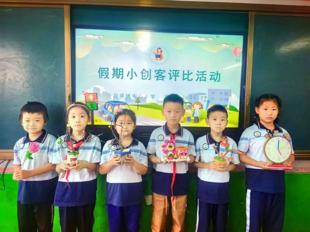 为展现学生丰富多彩的校园生活,培养学生的创造能力和动手实践能力,9月22日,白彦镇中心小学开展了假期小创客评比活动。(公芮)