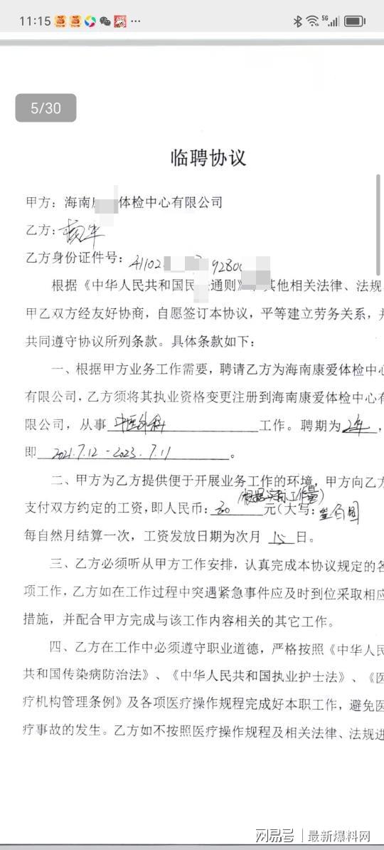 68岁退休中医遭海南康某体检被指冒签协议、欠薪辞退